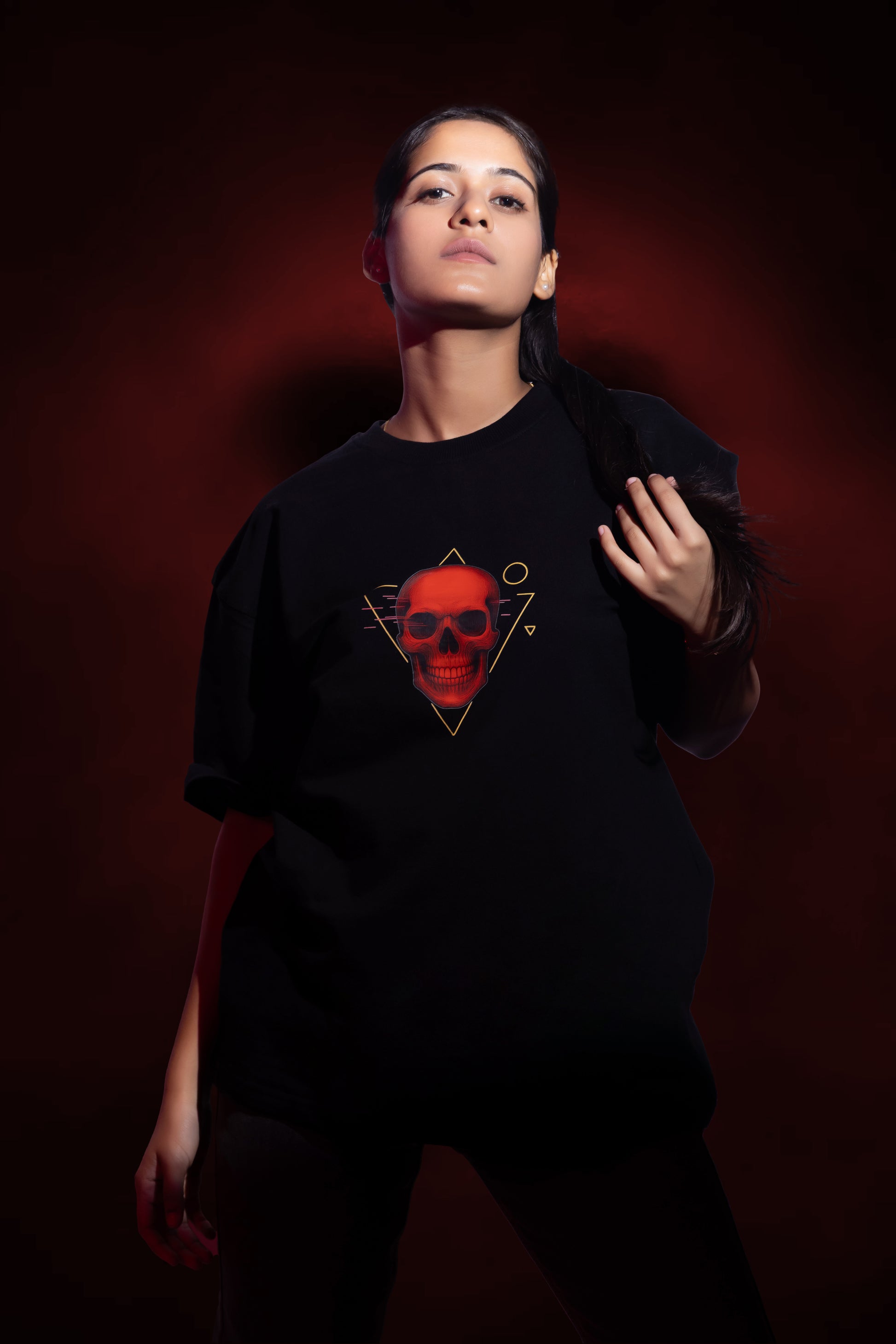 Blood Signal – Oversized Unisex Skull Graphic T-Shirt (Black)