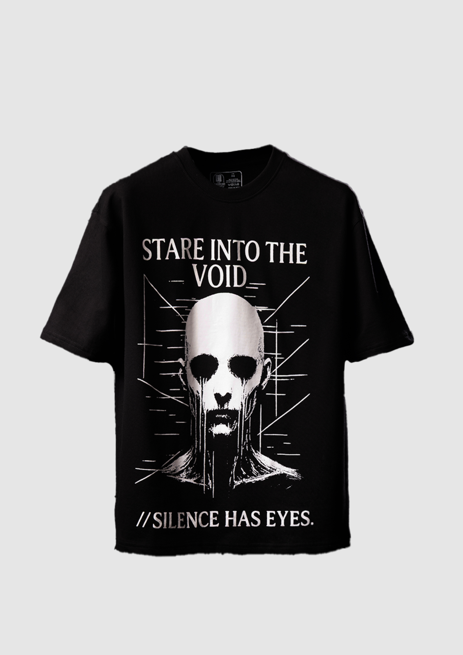 - Printed quote: “STARE INTO THE VOID // SILENCE HAS EYES”